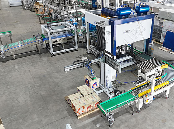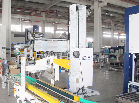 單立柱碼垛機(jī):單立柱碼垛機(jī)將封好的紙箱按照一定的排列方式和層數(shù)進(jìn)行碼垛。這一步驟自動化程度高,能夠大幅提高倉儲效率,減少人工搬運成本,并為后續(xù)的物流運輸提供便利。