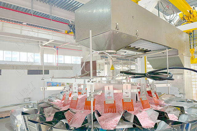 顆粒稱重多頭稱罐裝機(jī)系統(tǒng)配備20頭組合稱重,結(jié)合給料機(jī)構(gòu)可實現(xiàn)高精度自動稱重。該設(shè)備還包括轉(zhuǎn)盤平臺,用于傳輸瓶、防護(hù)欄和樓梯設(shè)計,方便員工操作。此外,它還配備了Z型給料機(jī),以確保不間斷的材料供應(yīng)。