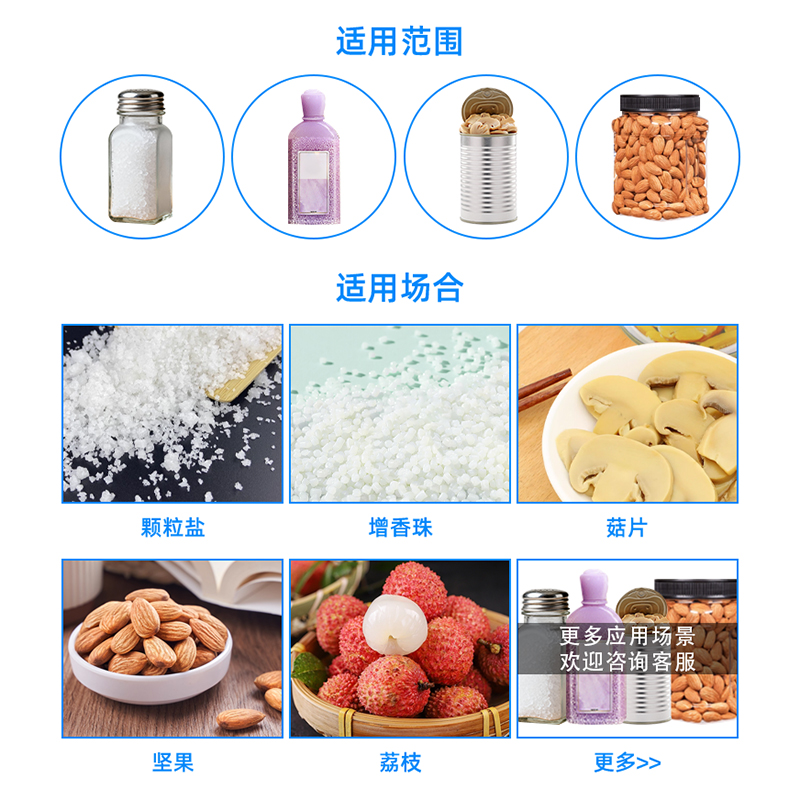 多頭秤灌裝機尼為機械顆粒鹽多頭秤灌裝機,是一款針對顆粒鹽物料特性研發的自動固型灌裝設備。該設備可全程自動化完成顆粒鹽的自動計量、定量送料、精準裝罐、成品輸送等全套包裝流程,無需人工過多干預,大幅提升生產線自動化水平。機身整體采用食品級SUS304不銹鋼打造,不僅外觀美觀大方,更能滿足鹽業生產要求,確保顆粒鹽在包裝過程中不受污染,設備制造精良、操作便捷、運行穩定,是鹽業規模化生產的理想選擇。