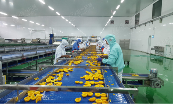 河北水果罐頭生產(chǎn)線項(xiàng)目包含前處理設(shè)備(從原料供應(yīng)至淋堿去皮)—挑選線—自動卸垛機(jī)(玻璃瓶)--自動洗瓶機(jī)--自動罐裝機(jī)—自動碼垛機(jī);該產(chǎn)線由尼為提供整套生產(chǎn)布局;